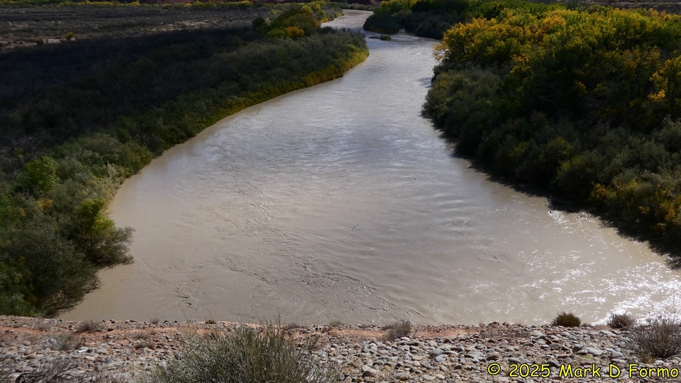 View of the San Juan River at 1910 cfs from the bluff along the Bluff River Trail. 70.52° F