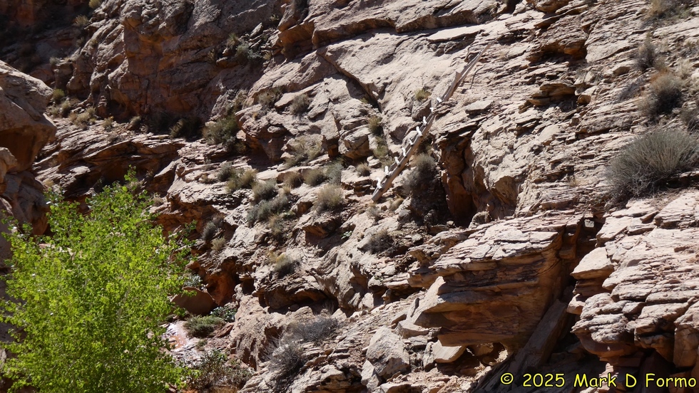 The sketchy-looking wooden ladder on the canyon wall along the Bluff river Trail. 70.33° F