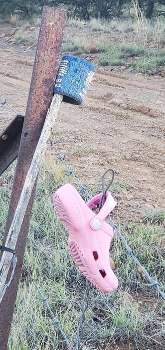 is some girl missing her sandal? $5 reward for whoever can find the left and the right. probably in that junk pile I saw earlier...