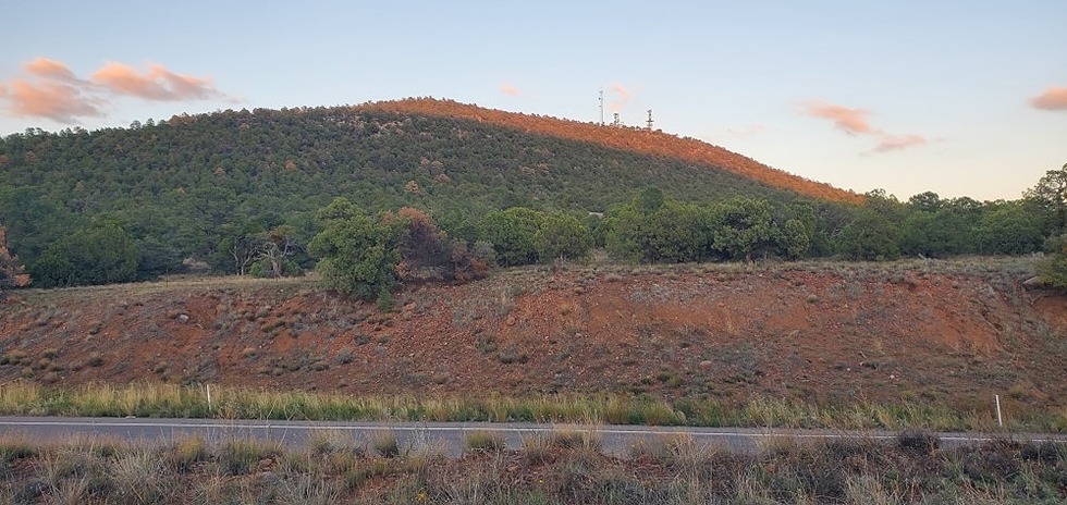 Looking across AZ-60 at the towers on a nearby peak