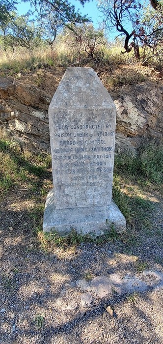 Monument at trailhead. The road was constructed by prison labor from 1913-1914.