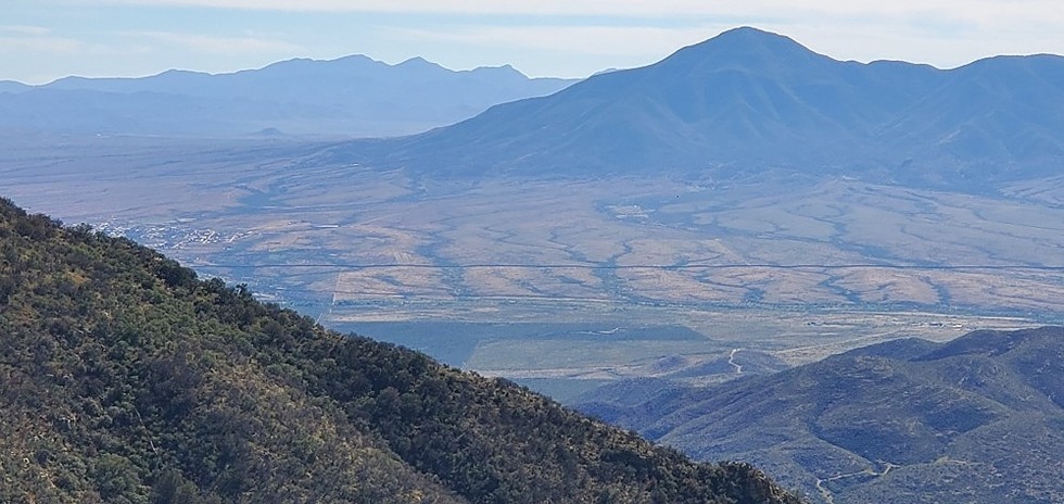 close up of border wall. town in the back is Naco, Sonora, Mexico