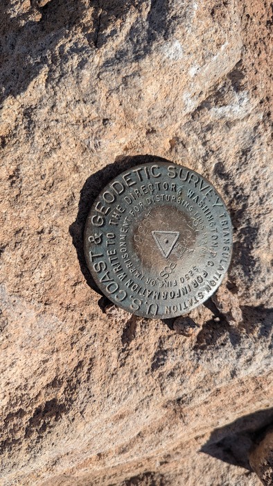 Geodetic Survey marker near the mailbox on Picketpost Summit. This has been here since 1936. Gotta respect the folks back then who made the climb to the top carrying a big slug of brass and tools to embed it in the rock. The marker datasheet is here: