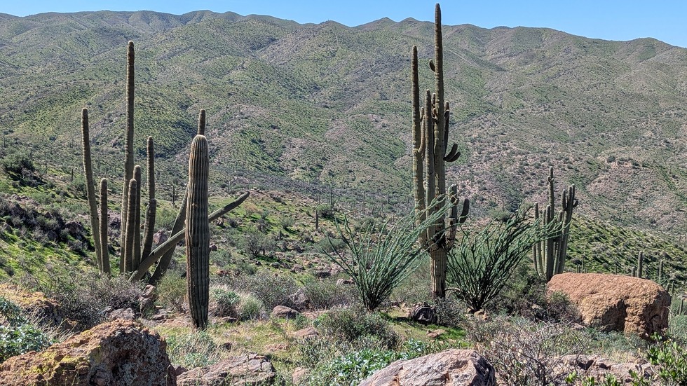 A couple of very large saguaros. The landscape all around was amazingly green.
