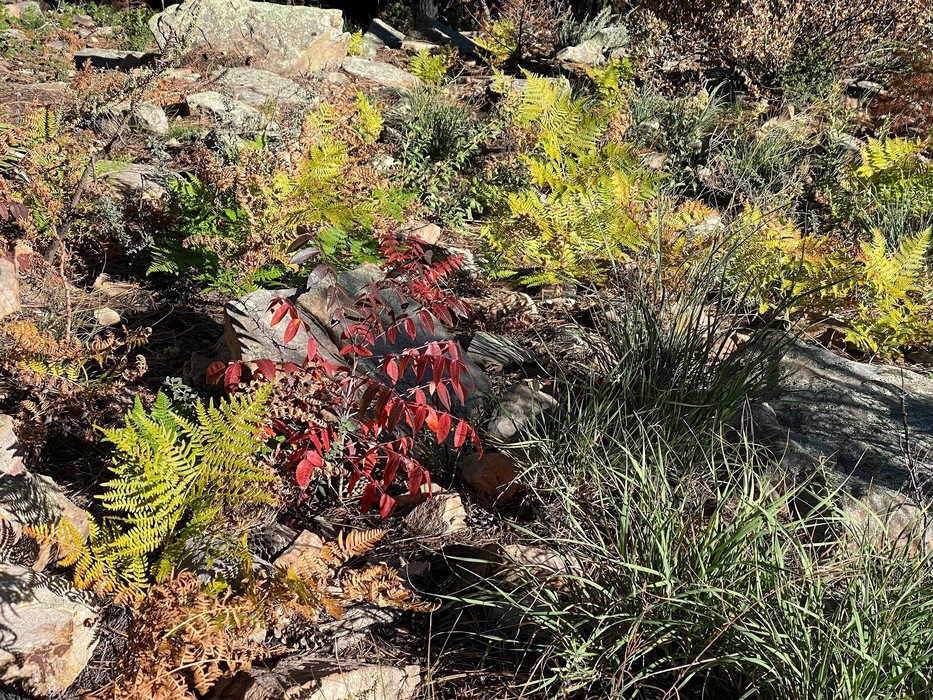 Heading down the Horton Springs Trail....a little color by way of the ferns and other small shrubs (sumac of some sort).