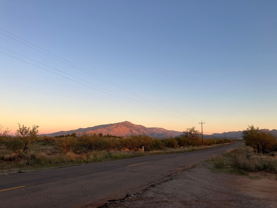 Sun hitting Rincon Peak on the drive to Miller Creek