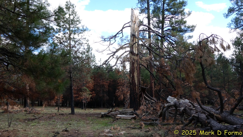 The large fallen tree on the return trip, no longer in direct sunlight. 56.84° F