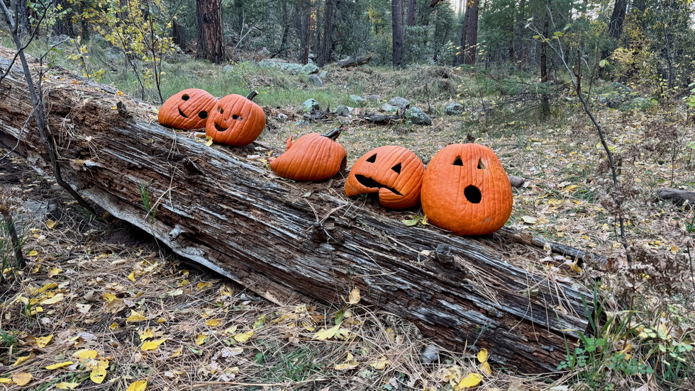 Somebody carried these to the forest for what was almost certainly a fun photo shoot. And then they decided to just leave them there to rot. Because ... people.