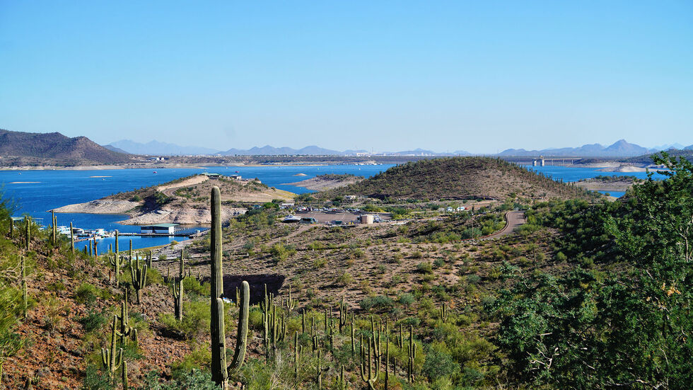 From the parking area at the end of thr trail, overrlooking Scorpion Bay marina