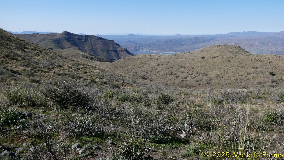 Maverick Mountain and Bartlett Reservoir from the ridge just North of Indian Spring Peak. 72.32° F