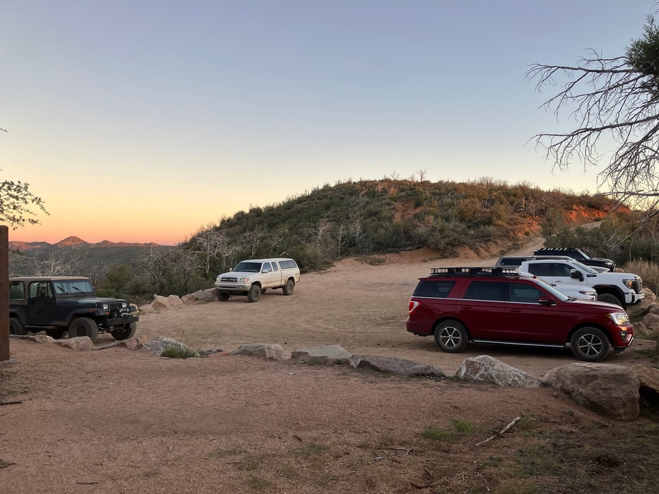 Quite a few vehicles at Lone Pine Trailhead early in the morning
