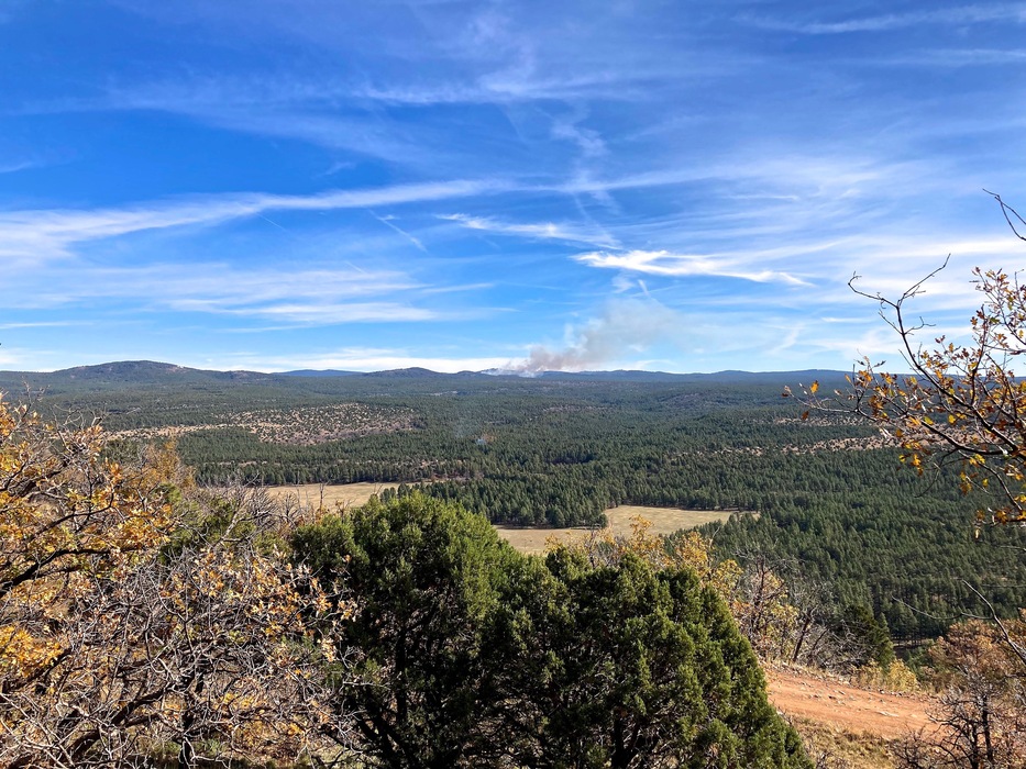 I also saw a snag smoking along FR 229. Tried putting it out, before I later saw the "controlled burn" sign. Note it's size and location at 10:40.