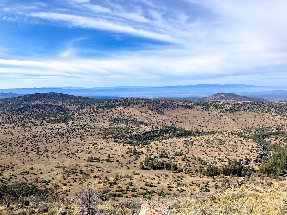 This is the second, higher hang gliding launch point, by the seasonal gate. Hog Hill now on the left. The Verde Valley was clearly visible. I think that is Mullican Canyon wrapped around the near right hand hill.