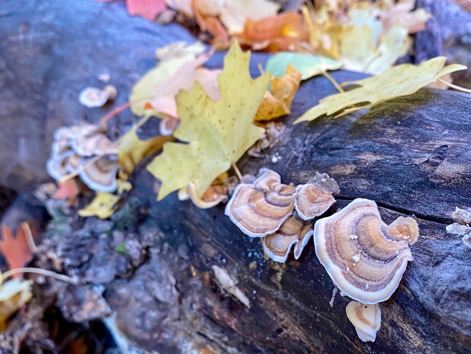 Several logs were covered in Turkey Tail Mushrooms (or turkeytail lookalikes - I didn't look too closely at their undersides).