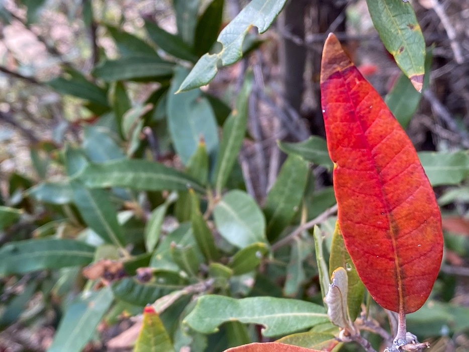 A bunch of plants were like this - a few leaves changed, but the bulk still fully green.