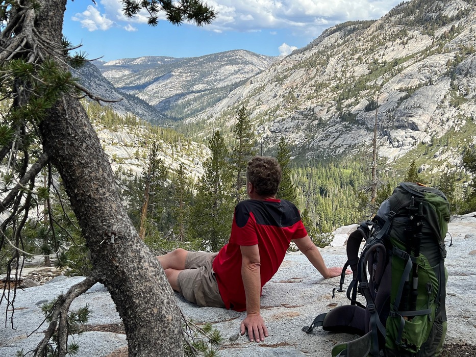 Chumley soaks it in as we take a short break. We're heading down the canyon seen ahead