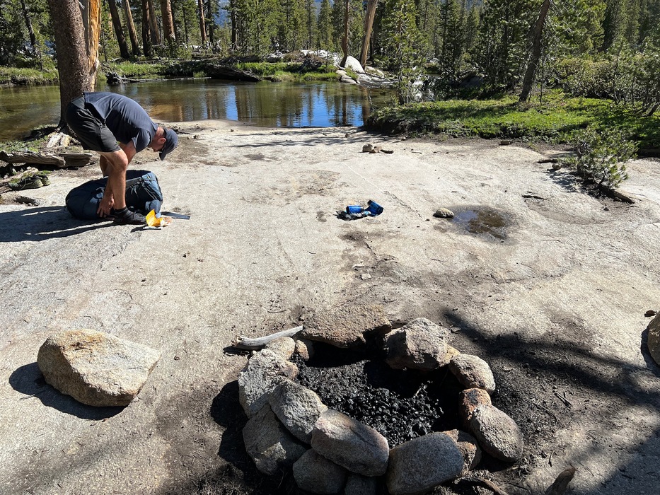 Packing up and starting off on day 3. We doused our campfire before departing. Something we always do