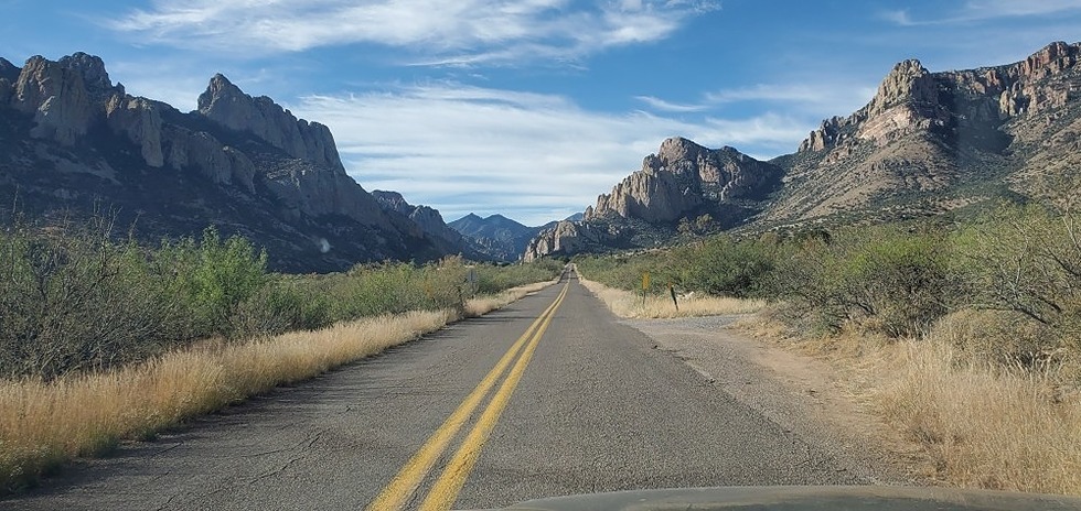 driving into Cave Creek Canyon