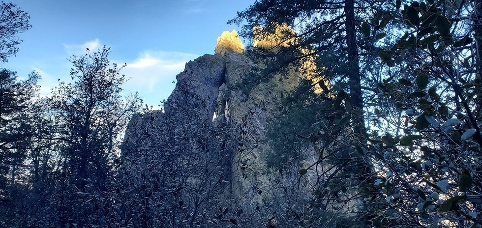 Looking up at rock formations
