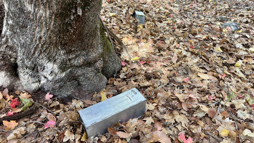 A group of researchers we encountered on the way in as well as later on the way out were responsible for these oat-baited traps. Not sure if it was squirrels or another small mammal they were hoping to catch, or what the purpose was.