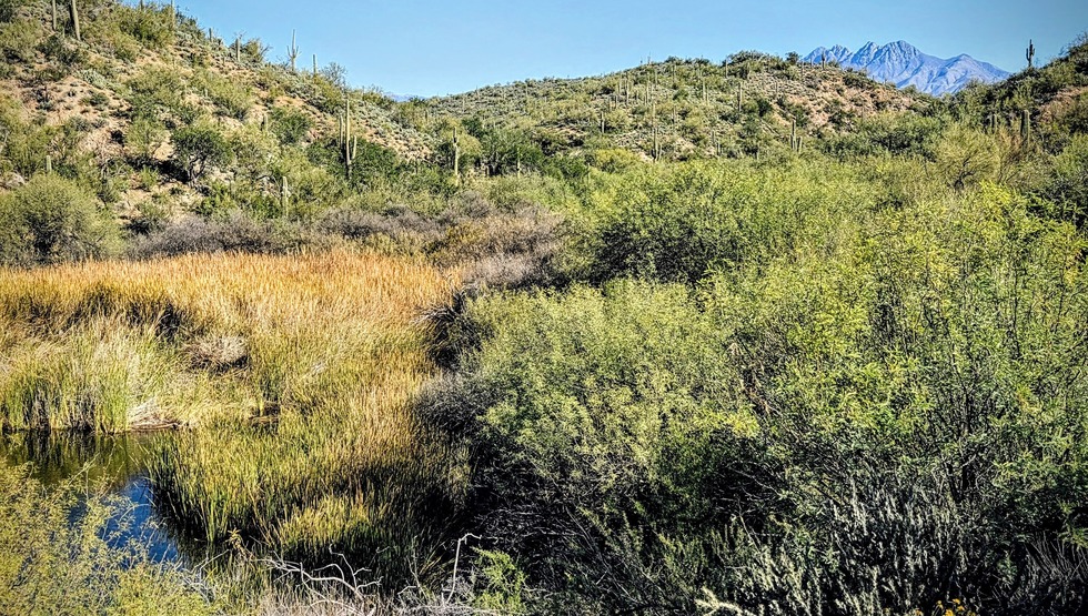Lush and plush with a saguaro and the Four Peaks in the distance.