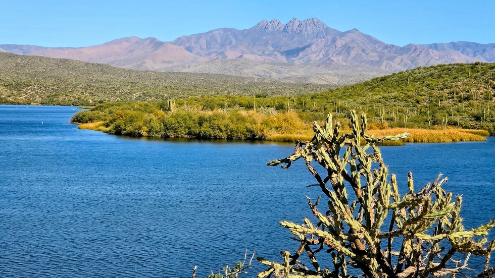 This photo doesn't really reflect how green it is; especially in the distance below the Four Peaks.