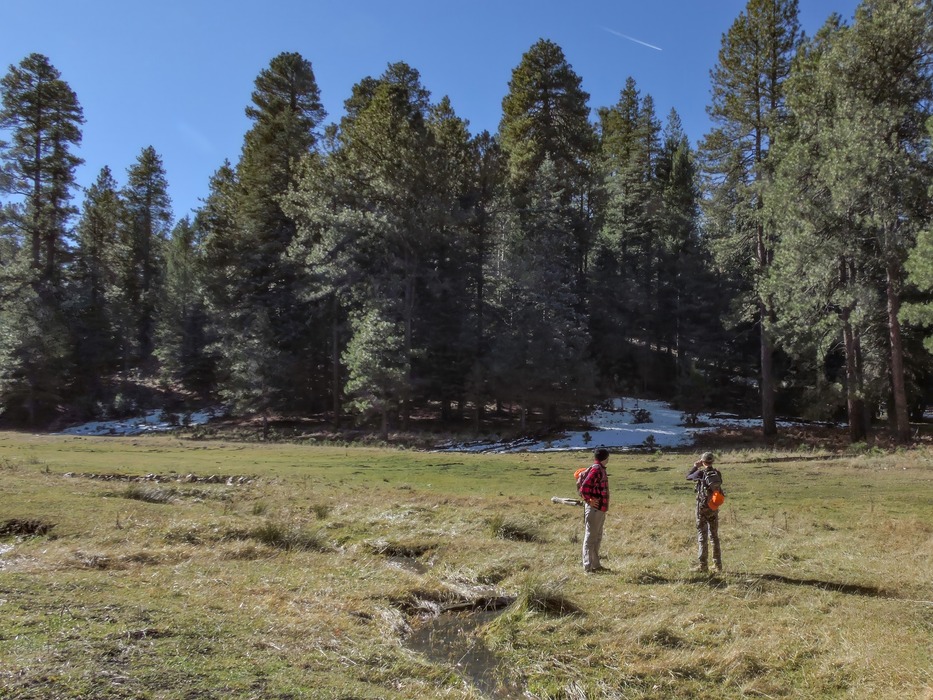Waiting for me to stop puttering around in the meadow before entering the forest on the west side of Merritt Draw.