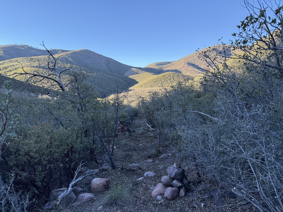 Looking back on freshly-cleared trail. There's a few larger things that will need a saw on my next outing.
