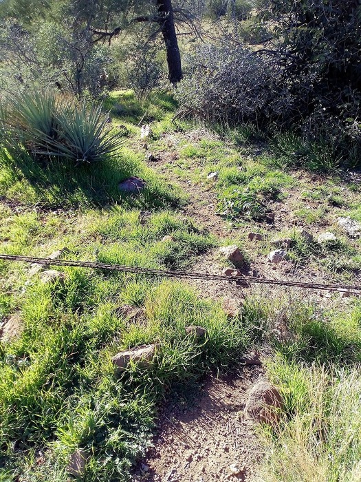 On my way west toward Chalk Spring. It's hard to tell from this photo (due to lack of stereoscopic vision) but the wire was close to the ground. (I.e., just step over it.)