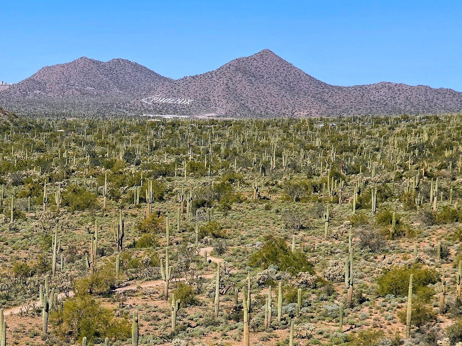 So many giant soldiers and lots of baby Brittlebush. I am looking to the northwest. Pass Mountain Trail below.