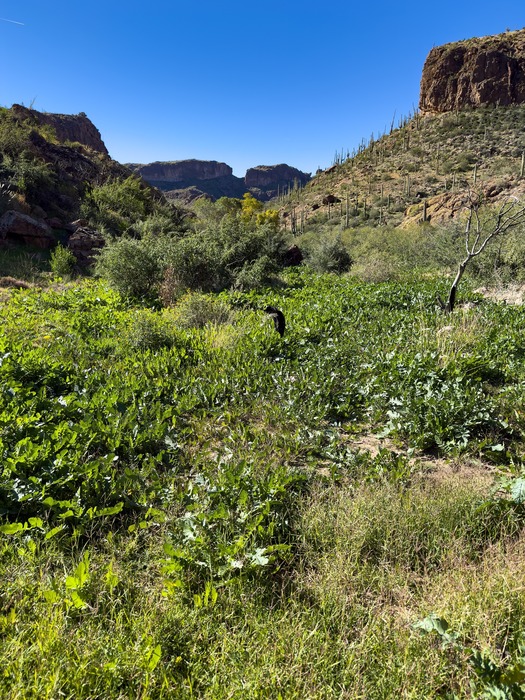 The trail was pretty overgrown in some spots in the canyon.