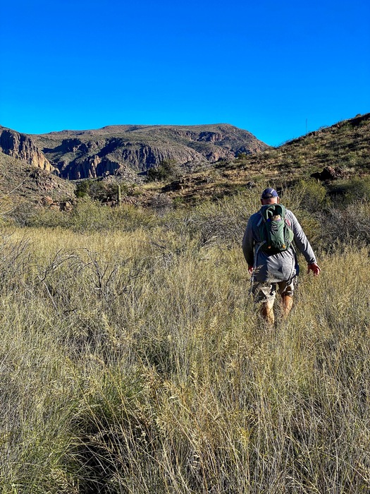 wading through the grasslands that cover this section of the Dutchman Trail