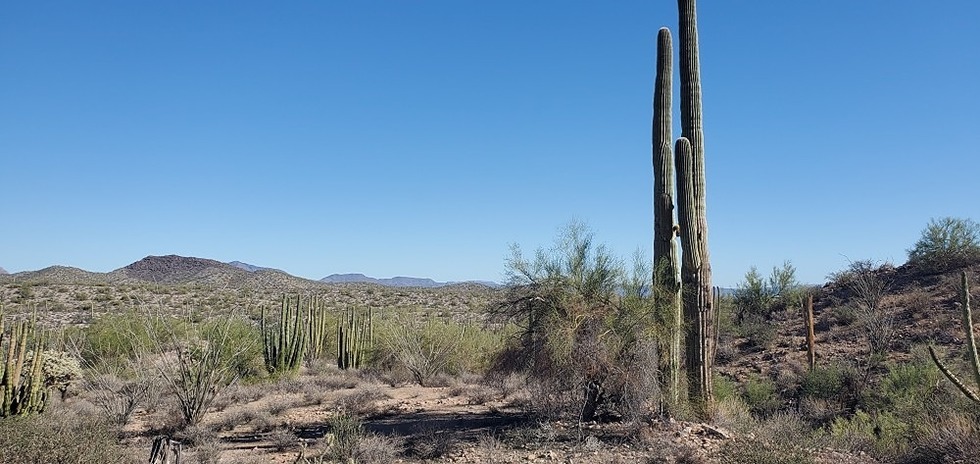 Desert view with some tall saguaros and organ pipes
