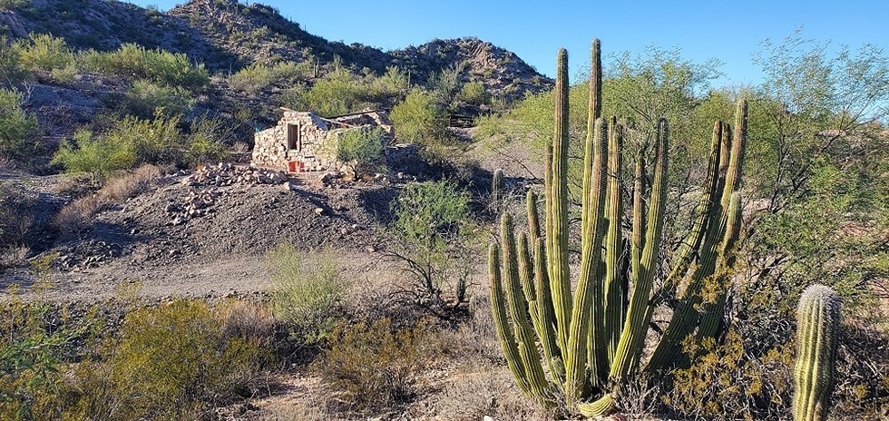 stone structure with organ pipe cactus nearby