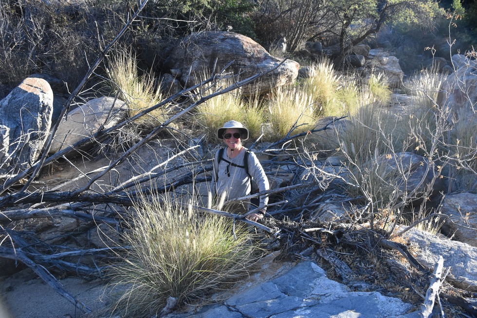This is the area I believe the spring is, the vegetation and trees indicate a source of water. It was dry at this time. About .25 miles up stream from the windmill.