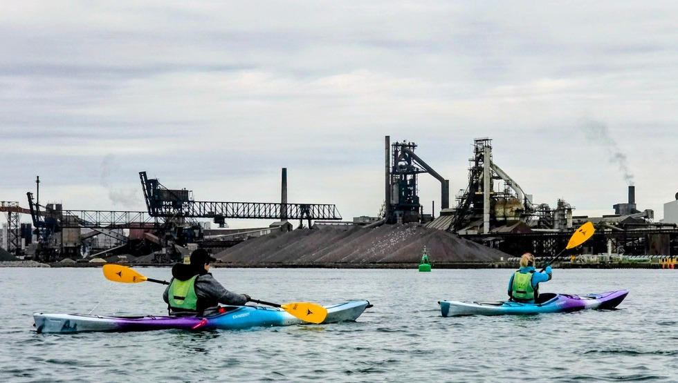 It took quite a bit of time to paddle past this amazing steel mill.... something I am not accustom to seeing. Unlike most other steel producers, Algoma had no access to local coal, forcing it to import coal and coke from the United States. The Bessemer process was felt to produce steel that was well-suited to manufacture of rails, which was the Algoma complex's primary product for the first two decades of its existence.
