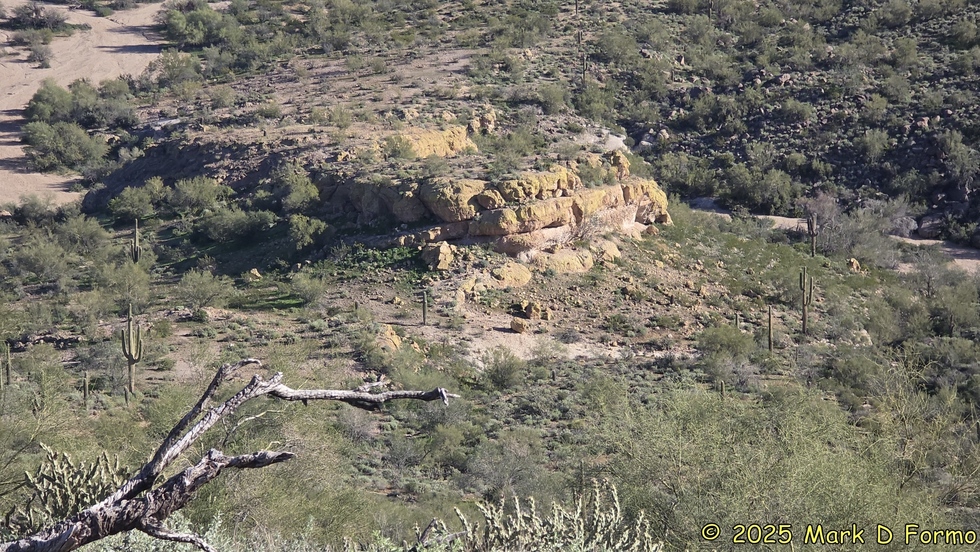Almost invisible off the left end of the large rock outcropping is the namesake of the 'Goldfield Ovens' Loop hike. 63.92° F