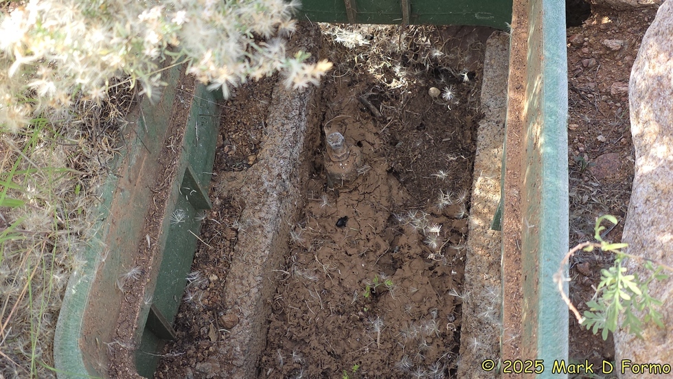 Inside the Irrigation Control Valve Box along the old road. Although covered in muck, this valve is at a tee in the pipeline. 64.40° F