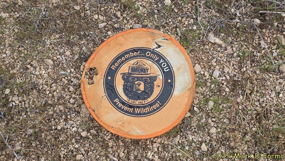 At first I thought it was a frisbee, but it was just a flat fabric disc reminding us "Remember... Only YOU (can) Prevent Wildfires!" 69.20° F