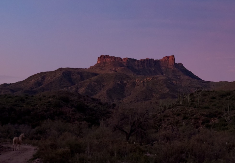 Two Bar at first light. Notice the horse lower left. Not sure why it was wondering around, maybe it had gotten loose from the ranch.