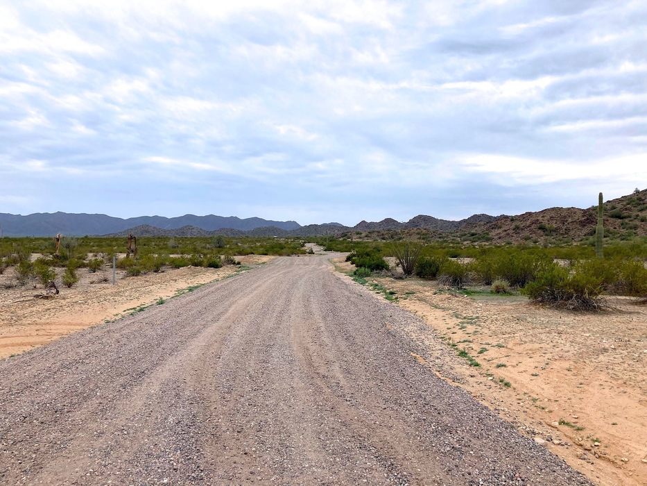 BLM 8002 turns to maintained gravel road just north of BLM 8002B, halfway between the registry and AZ-238.