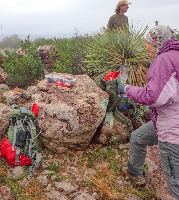 Pam's signature cookies and chocolate covered strawberries on the boulder.