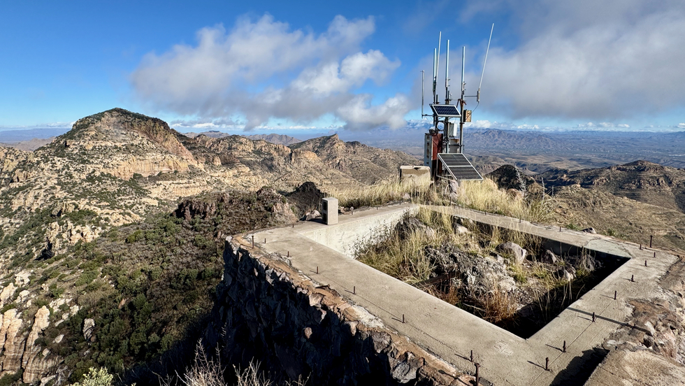 Atascosa summit on the left. Former lookout foundation at the end of the developed trail.