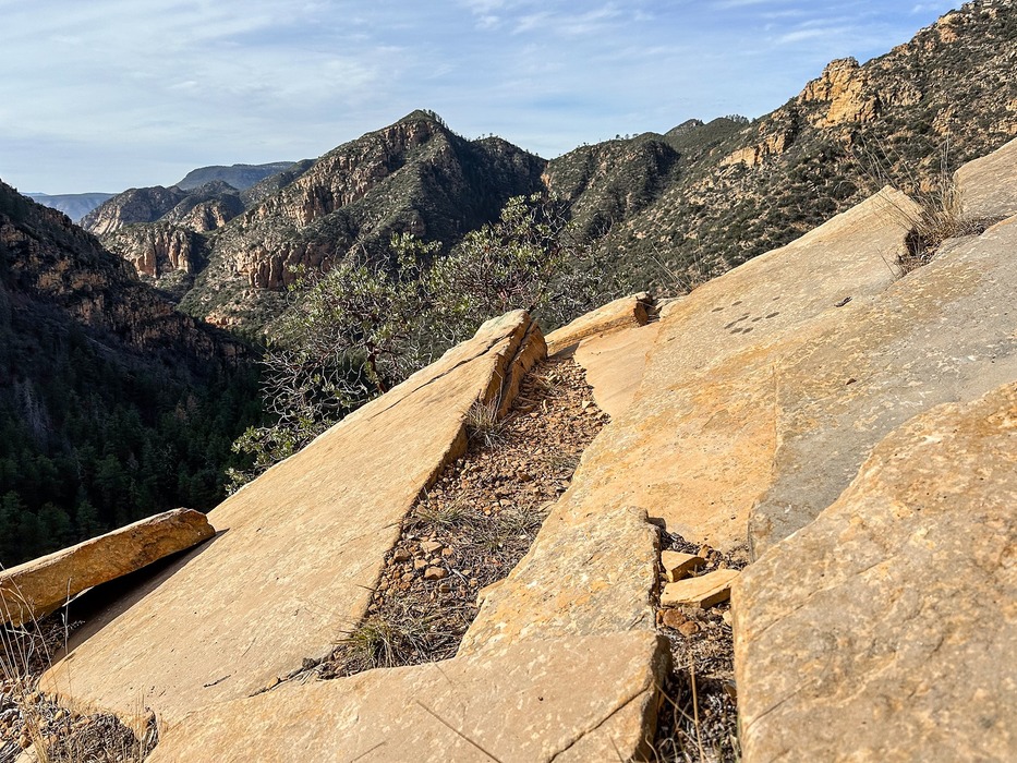 Sandstone slabs as the trail climbs the canyon wall.