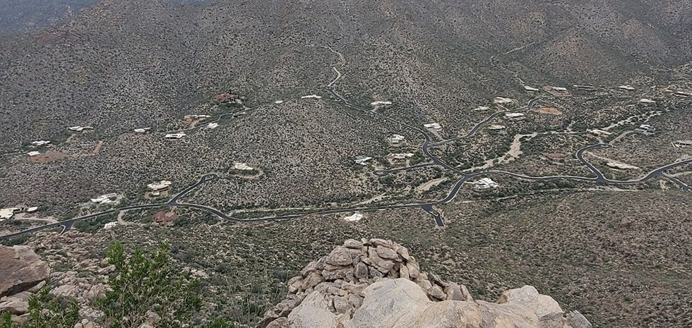 Looking down at the homes in Ruelas canyon
