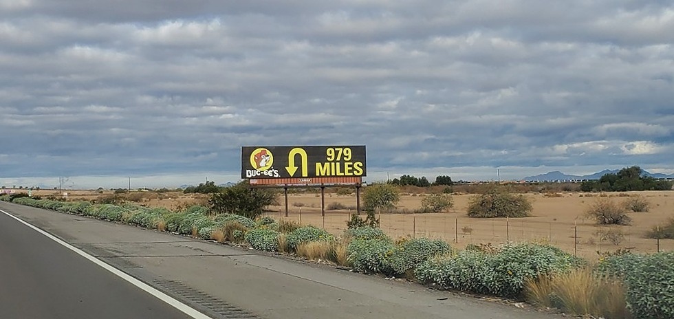 On I-10, along the way to PHX, I saw a Buc-ee's sign - U-turn and 979 miles away! Maybe one is coming here soon.