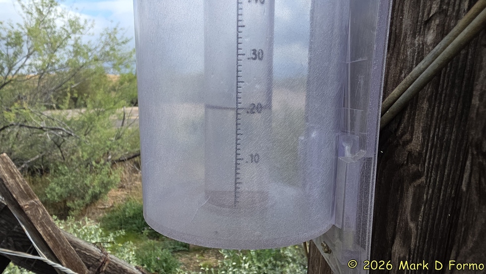 The rain gauge registered 0.20" precipitation over the last 48 hours. And as it turns out, at least that much more will be added over the next 90 minutes of the hike. 61.16° F