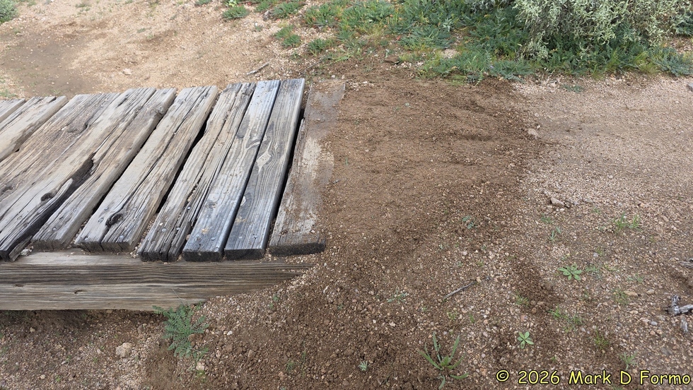 The gap on this edge of the bridge on the Stinger Trail had been growing for months, and since the ground was soft/wet I placed rocks in the gap then finished it off with a layer of gravel. 59.18° F