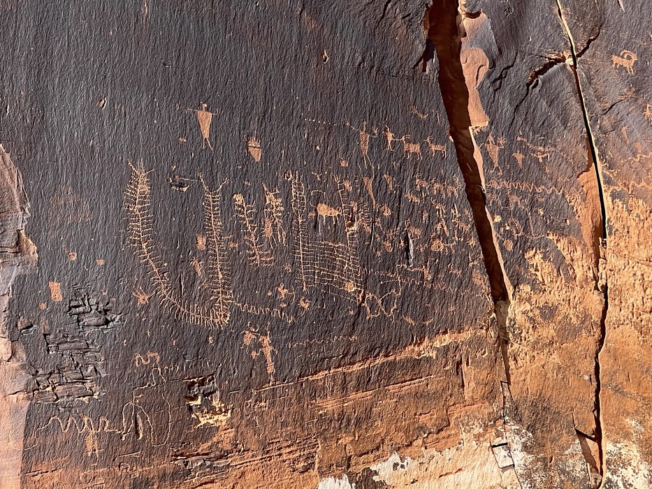 Nice petroglyph panel just off the side of the road along the Colorado River, on the way to/from Corona Arch TH