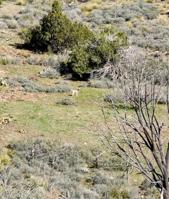 Too far away to see, and it ran away before I got down to it, but it kind of looks like a buck, but not 100% certain.
